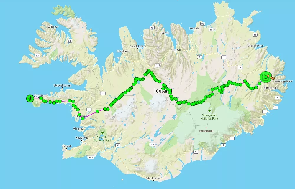Najtrudniejszy odcinek, czyli przejście ponad 600 km przez islandzkie wyżyny, zajęło Superganowi 29 dni. Liczący 800 km zimowy trawers zimą całej Islandii ze wschodu na zachód - dni 36.