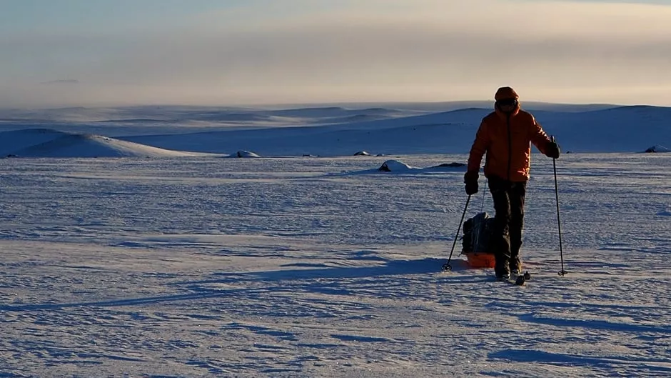 Pewnie tak... ale wymagałby to gigantycznego wysiłku. Natomiast gdybyś zapytał, czy da się ją pokonać bez sań – odpowiem, że prawdopodobnie nie. Ciężar plecaka, który musiałbyś dźwigać, byłby ogromny. Na starcie miałem na saniach jedzenie i paliwo na 3 tygodnie. To ważyło około 25 kg. Do tego dolicz sprzęt i okaże się, że na saniach masz 50 kg towaru. Gdybyś musiał wziąć to na plecy, raczej nie mógłbyś się przemieszczać. A teraz wracając do pytania: czy można by iść ciągnąc sanie bez nart? Hmmm... na mojej trasie było momentami tyle śniegu, że szalenie trudno byłoby przemieszczać się bez nart. Nawet jadąc na nartach zapadałem się po kostki. Bez nart byłoby po kolana. Zrobienie w takich warunkach kilkudziesięciu kilometrów na dobę... wątpię, żeby było to możliwe. Teoretycznie pewnie się da, ale musiałby to być jakiś niesamowity harpagan.