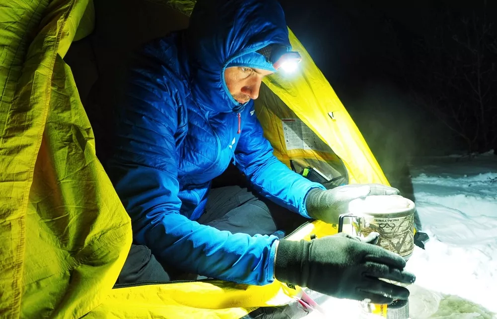 A drugie rozwiązanie, w Polsce mało popularne, to tak zwany „vapor barrier”: kładąc się spać nie wchodziłem bezpośrednio do śpiwora, bo moje ciuchy mogły być wilgotne, tylko najpierw otulałem się kokonem nieprzepuszczającym pary wodnej. Dzięki temu ubranie nie parowało w nocy i nie powodowało zawilgocenia puchowego śpiwora, który dłużej pozostawał suchy.