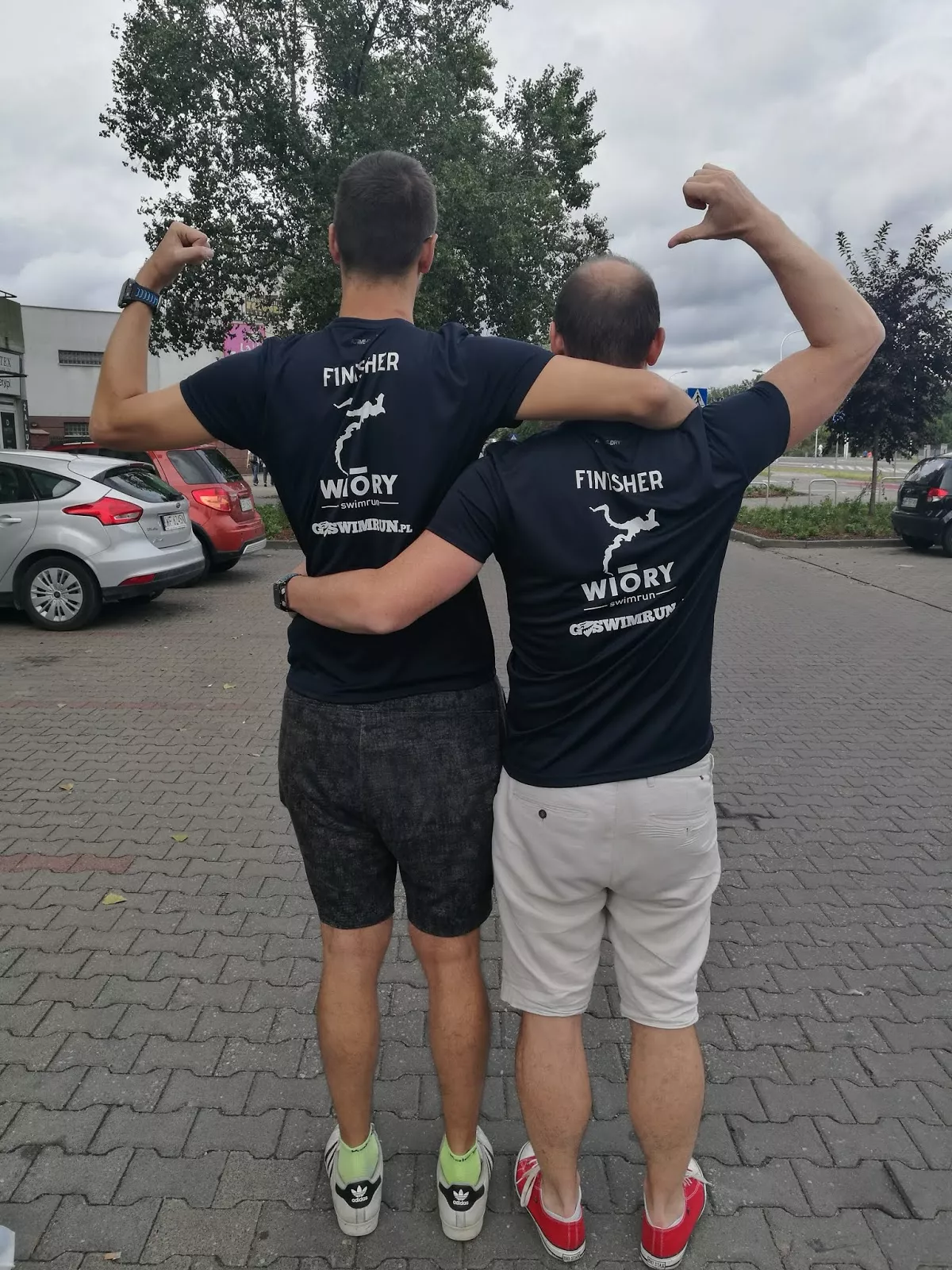 Pierwszy raz z informacją o swimrunie natknąłem się jakiś rok temu oglądając relację „Od Grubasa do Ultrasa” z jego startu w Rockmanie i zapadło mi to w pamięci, a zwłaszcza szczególnie pokonanie 4 444 schodów. Istna droga przez mękę, ja nie wiem czy bym dał rade pokonać tysiąc. Pokazałem ten filmik koledze i od razu się wkręciliśmy. Znudziło nas już klepanie kilometrów po asfalcie, triathlony nie dla nas, więc swimrun spadł nam z nieba. Odpaliliśmy przeglądarki w telefonach i poszukiwania takich zawodów w Polsce. Trafiliśmy na imprezę w Stężycy. Od razu się zapisaliśmy na indywidualne 5km. W debiucie Tomek zajął 3 miejsce, a ja bodajże 8. To miało być przetarcie przed pierwszy poważniejszym startem na Swimrun Wióry.