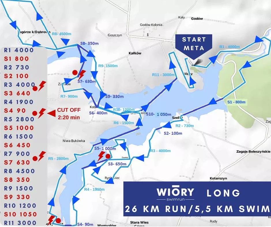 - Sobota, 25 sierpnia, godzina 3 rano. Ruszamy z Warszawy, kierunek Wióry w Górach Świętokrzyskich. Start na długim dystansie podczas zawodów Swimrun Wióry. W planach było jakieś pięć-sześć godzin wysiłku. Na zmianę bieganie i pływanie, bieganie, pływanie, itd. Według organizatorów wpław pokonać trzeba było w sumie 5,5 km i ok 26 km biegnąc. Z kolegą Tomkiem jak to ostatnio bywa ponownie pojechaliśmy nieprzygotowani biegowo, ale pływacko nie baliśmy się niczego. Zarówno jeden jak i drugi z nas bez problemu robi ponad 3 km ciągiem poniżej godziny.