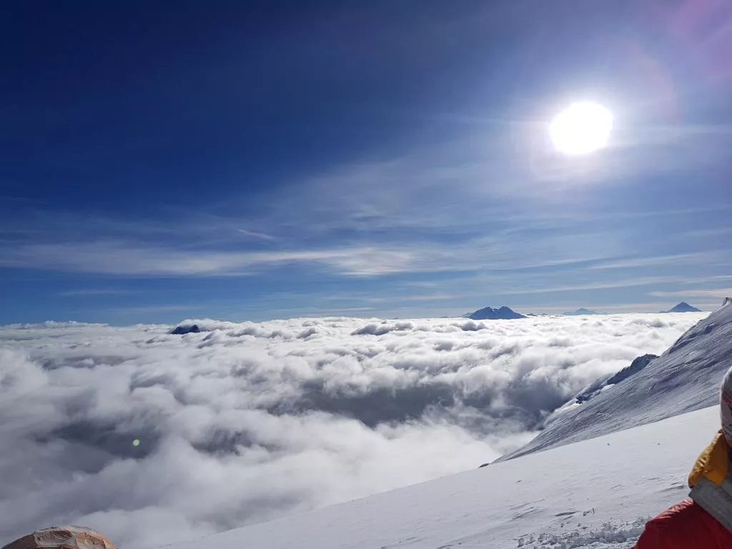 Rozgrzewka w postaci wejścia na okoliczne górki… No, ładne górki, takie po pięć osiemset, sześć tysięcy metrów : ) W tej bazie każdy ma już osobny namiot, obok nas rozłożyły się inne wyprawy: Chińczycy, Katalończycy i Chilijczycy.