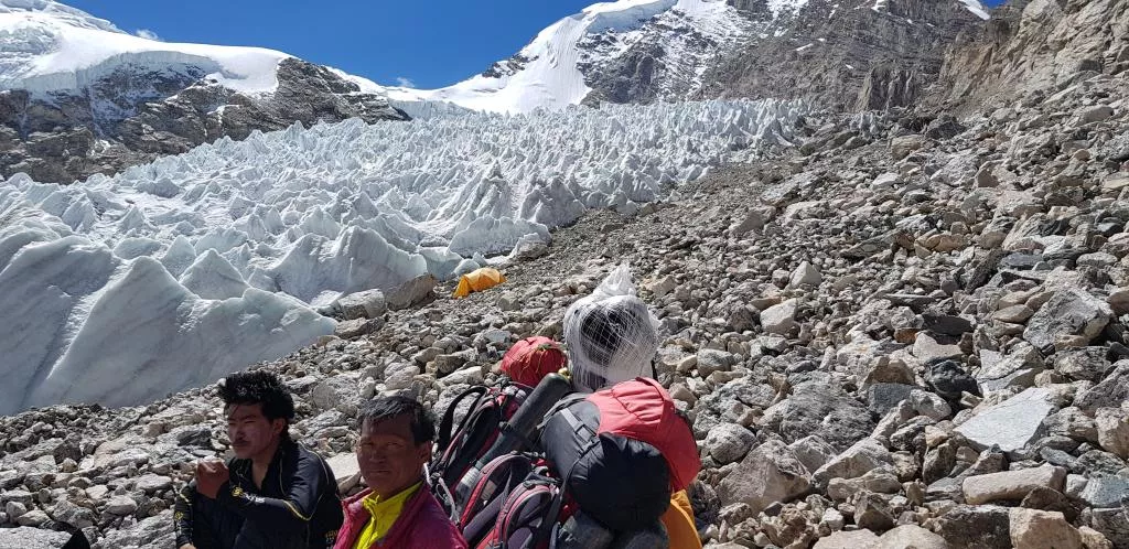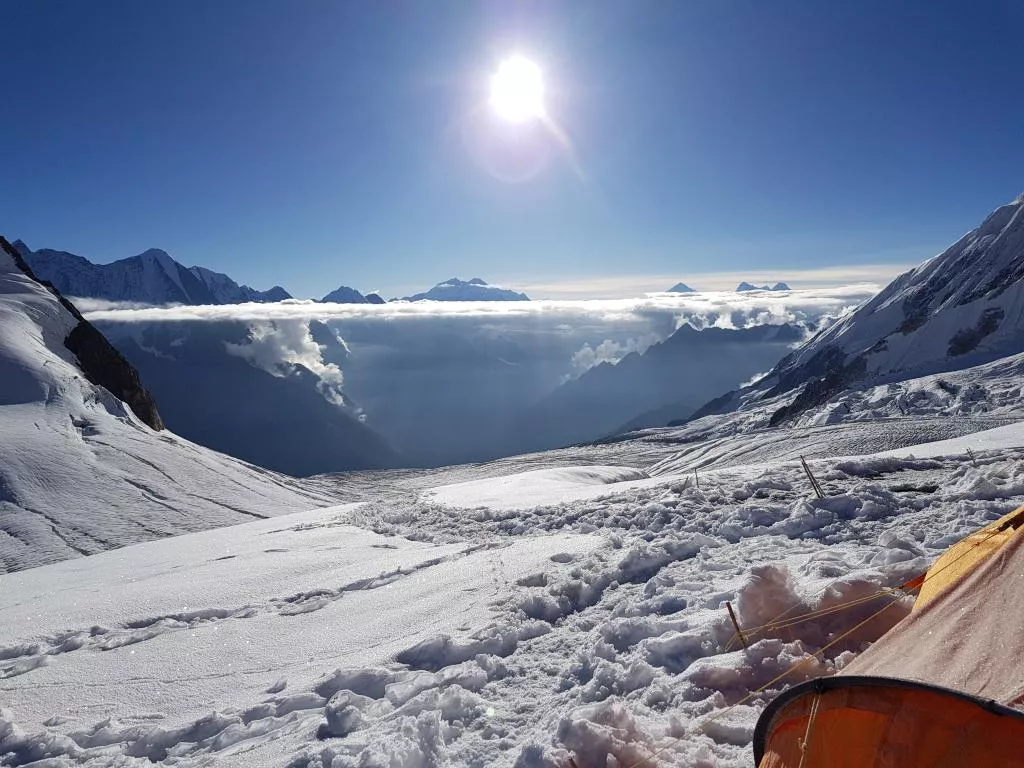 Manaslu: „Pierwsze doświadczenia wspinaczki od strony południowej. Trudny, miękki lodowiec, szczeliny…”