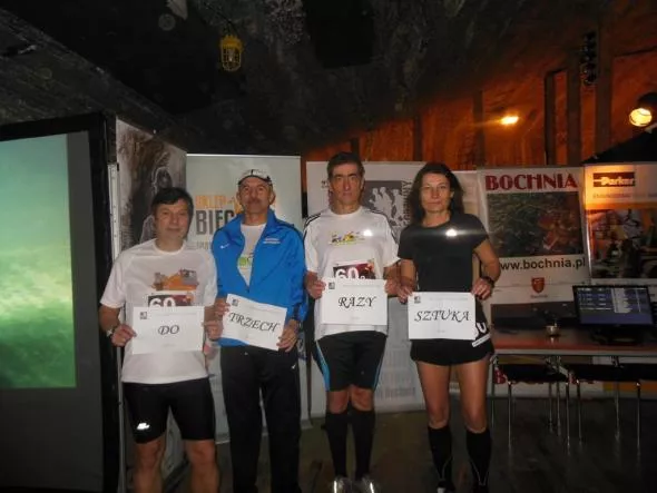 Na 12-godzinną sztafetę w Bochni próbowaliśmy się załapać od dwóch lat, niestety fortuna nie sprzyjała naszej drużynie. W tym roku postawiliśmy wszystko na jedną kartę. Przeorganizowaliśmy skład, tzn. do Andrzeja, Darka i Jana, dokooptowaliśmy Teresę, zmieniliśmy nazwę na „Do trzech razy sztuka” i... wypaliło! Wylosowaliśmy udział w imprezie.