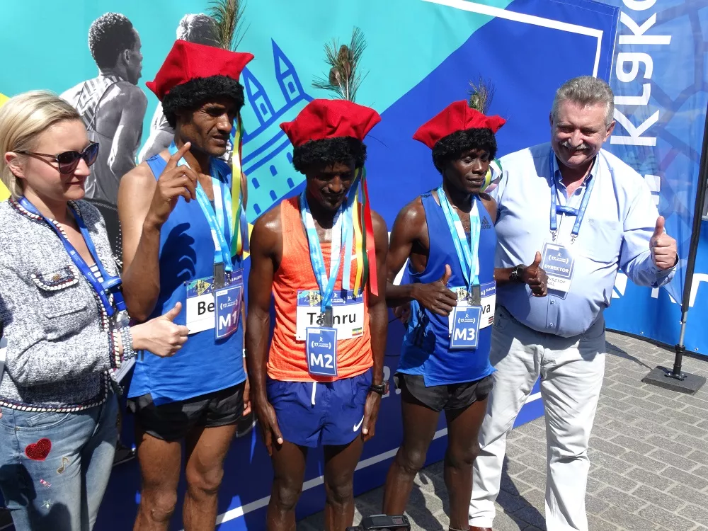 Tamru finiszował prawie półtorej minuty po zwycięzcy, Kyeva ponad 2,5 minuty. Cała trójka została tradycyjnie udekorowana krakowskimi czapkami.