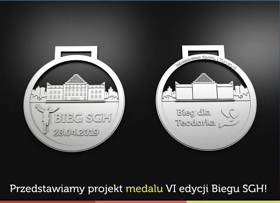 – Medal został zaprojektowany przede wszystkim tak, aby kojarzył się z naszym Biegiem – zaznacza Arek Chruściel – i tak na przodzie medalu możemy ujrzeć budynek naszej Alma Mater, natomiast tył medalu jest w całości poświęcony Teosiowi.