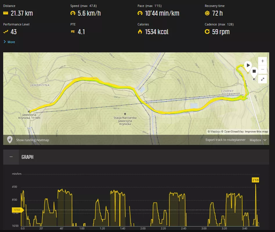 Kiedy tylko mogę, wybieram pobyt blisko tras Festiwalu Biegowego, w którym uczestniczę od 4 lat. Najpierw był Koral Maraton w 2015 r., a potem dwukrotnie Iron Run (2016 i 2017). Na 2018 rok planuję Krynicką Setkę - Bieg 7 Dolin 100 km. Teraz przygotowuję się do biegu Pozor 24h (ultramaraton na Skrzyczne, ze Szczyrku, letnia wersja Zamieci - pętla 18 km, przewyższenie na pętli +/-1500m) ale wciąż z myślą o Festiwalu. Dlatego ostatnio moim najczęstszym treningiem było kilkukrotne podbieganie na Jaworzynę Krynicką.