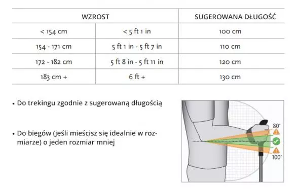 Zgodnie z zaleceniami firmy Black Diamond wybrałem dolną granicę. Ponieważ podczas biegania głownie używa się kijków na podejściach.