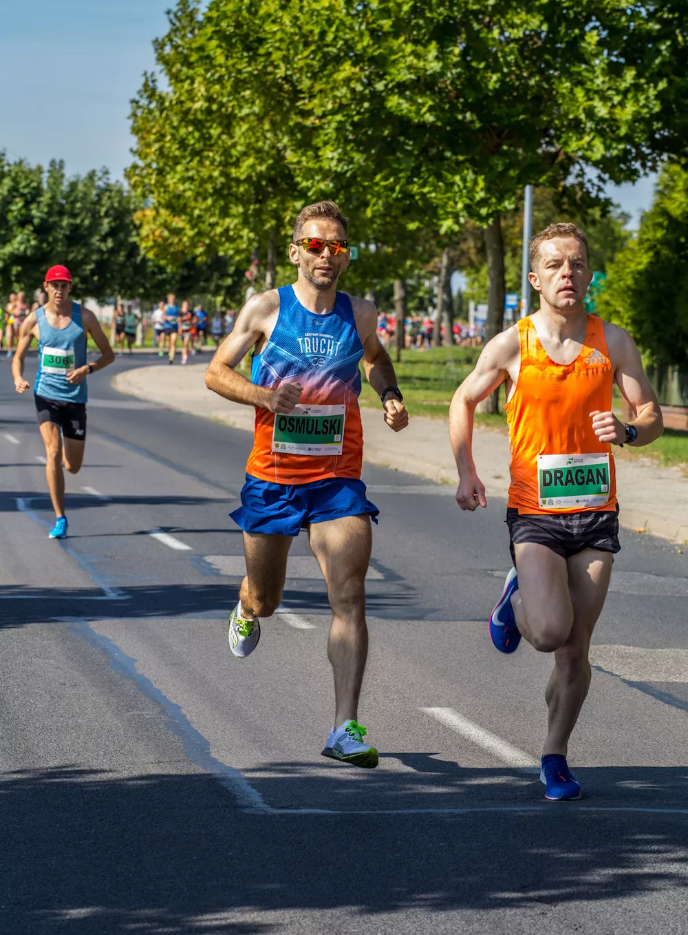 Punktualnie o 12:00 wystartował bieg główny, odbywający się na lekko zmodyfikowanej trasie, która sprzyjała biciu rekordów życiowych, o czym świadczą chociażby nowe „życiówki” dwóch pierwszych mężczyzn na mecie! Od samego startu bardzo mocne tempo narzucił Aleksander Dragan, którego tempo wytrzymał tylko Tomasz Osmulski. Panowie pierwsze 2 km minęli w czasie 5:47.