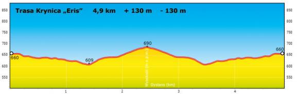 Trasa biegnie na południe wzdłuż ul. Czarny Potok. Na wysokości przystanku autobusowego skręca w prawo pod górę. Następnie trasa podąża czerwonym szlakiem w kierunku Jaworzyny Krynickiej, aby po 1 km nawrócić.