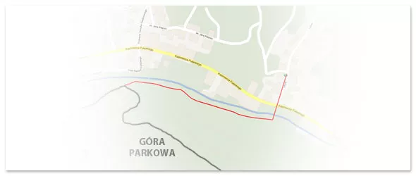 Biegniemy ul. Leśną w dół, przecinamy ul. Pułaskiego przebiegamy przez mostek i wbiegamy do Parku Zdrojowego. Dalej biegniemy lekko w dół ok. 500 m i dobiegamy do staru i mety pętli w Parku Zdrojowym.