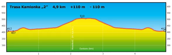 Start i meta znajdują się przy parkingu przy kościele Matki Boskiej Nieustającej Pomocy. Asfaltowa trasa w dużej części biegnąca przez las prowadzi do wioski Mała Wyżna. Na trasie, na której panuje bardzo mały ruch samochodowy są liczne zakręty i podbiegi.