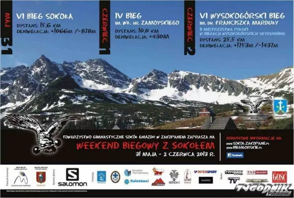 Gwoździem programu weekendu z Sokołem będzie Bieg Wysokogórski im. Franciszka Marduły, będący jednocześnie II Mistrzostwami Polski w Skyrunningu. Z morderczą trasą biegu ? 25,5 km, najwyższy punkt Świnicka Przełęcz 2051 m n.p.m., suma przewyższeń 1753m ? zmierzy się 350 zawodników. Lista startowa została już zamknięta, niemniej organizatorzy zachęcają do wspierania zawodników na trasie. Bieg startuje o godz. 7 z parkingu w Jaszczurówce, pierwsi zawodnicy spodziewani są na mecie po ok. dwóch godzinach.