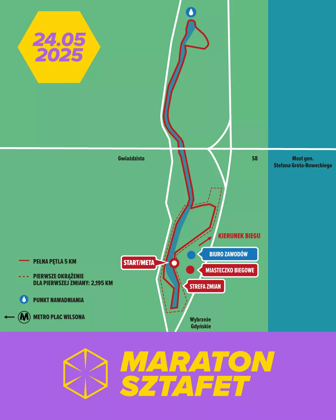 Maraton Sztafet to drużynowy bieg, w którym sześć osób razem pokonuje dystans maratonu – każdy z zawodników pokonuje kolejno: 7.195, 10, 10, 5, 5 i 5 km – co łącznie daje 42,195 km. To świetna okazja, by połączyć sport z integracją i wspólną zabawą. Drużyny startują co 20 minut, a trasa jest wytyczona przez jeden z najpiękniejszych parków w stolicy – Kępę Potocką. To miejsce stworzone do biegowej rywalizacji i dobrej zabawy, trasa jest szybka, płaska i jednocześnie pełna zieleni. W biegu rywalizują m.in. drużyny firmowe z różnych branż – m.in. IT, prawa, medycyny czy organizacji pozarządowych. To nie tylko wyścig, ale też świetna okazja do sprawdzenia, która branża jest najbardziej aktywna i zgrana. Warto jednak pamiętać, że Maraton Sztafet nie jest wydarzeniem wyłącznie firmowym. W ekidenie startują rodziny, grupy przyjaciół i reprezentacje wielu grup biegowych z całego kraju.
