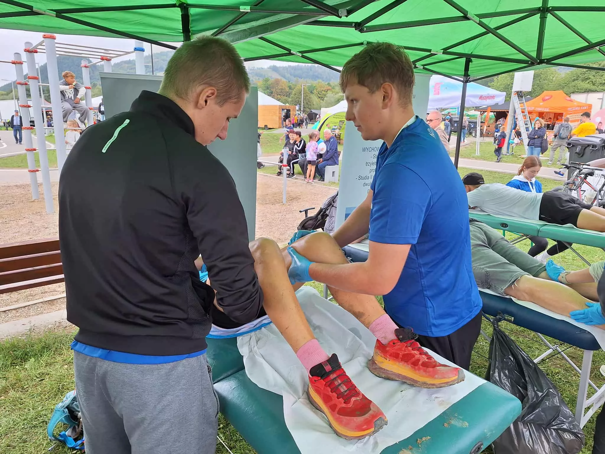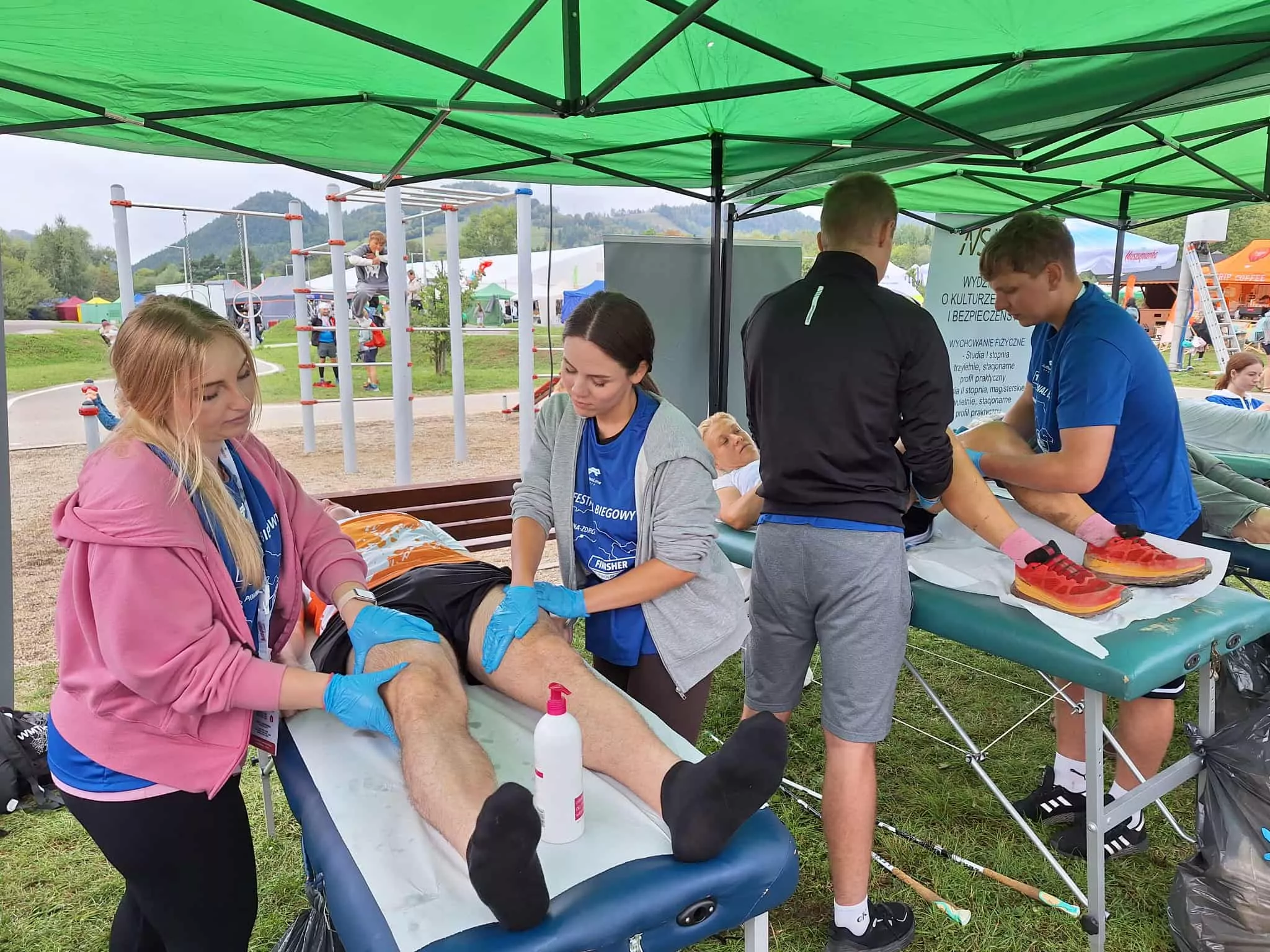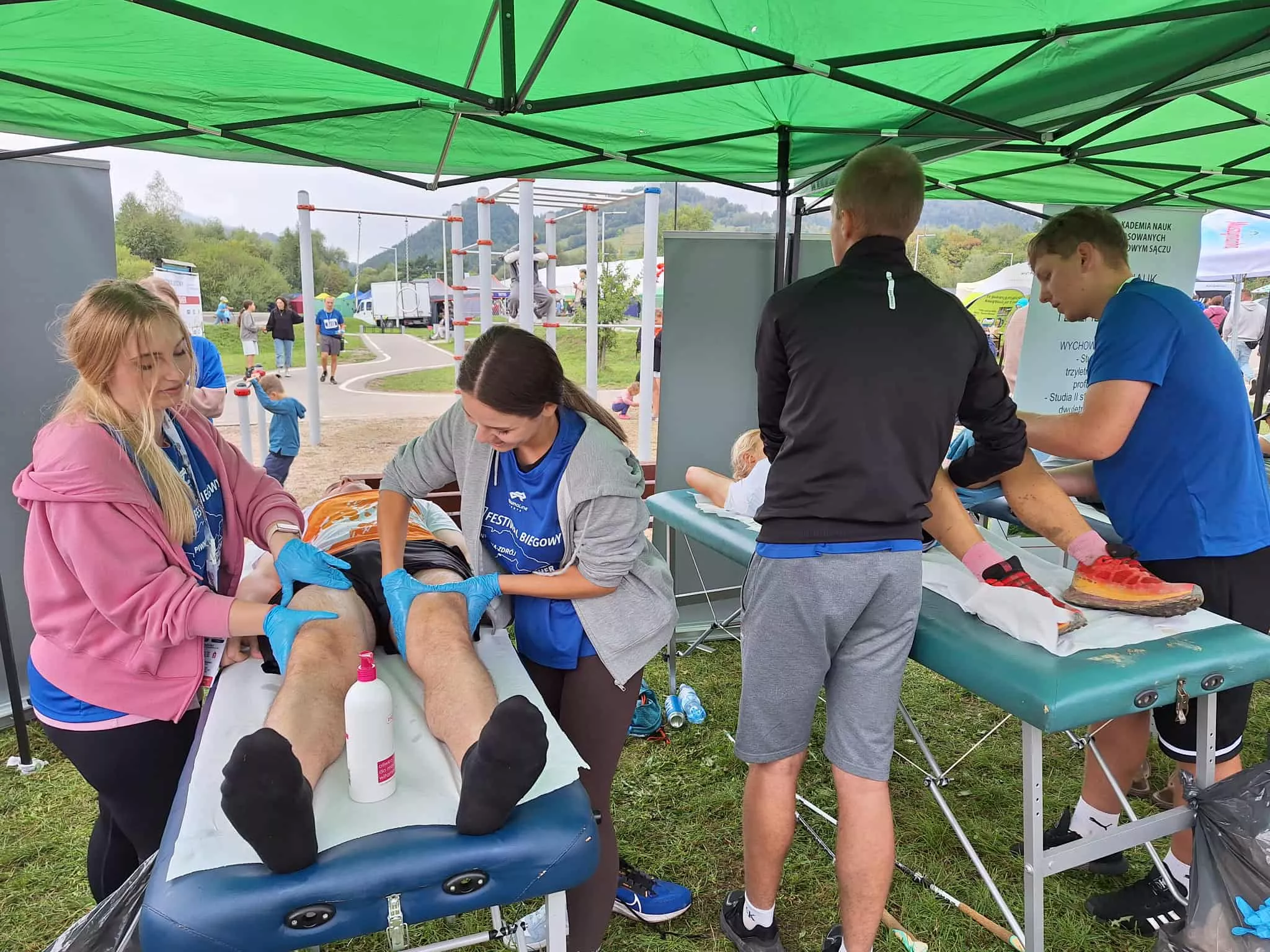 Podczas tegorocznego Festiwalu Biegowego w Piwnicznej biegacze mogą skorzystać z wyjątkowej strefy masażu, która jak co roku cieszy się dużym zainteresowaniem. Dwudziestu studentów Akademii Nauk Stosowanych w Nowym Sączu – główne fizjoterapii, bezpieczeństwa wewnętrznego i wychowania fizycznego - z pasją i zaangażowaniem dba o regenerację biegaczy po wysiłku.