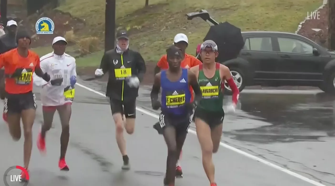 Gdy wydawało się, że Kirui obroni tytuł, sprawy przybrały nieoczekiwanego obrotu. W okolicach 40 km Kenijczyk wyraźnie opadł z sił. Biegnąc spokojnie wziął wodę, obejrzał się za siebie, a tam już zmierzał rozpędzony niczym Kamikaze – Yuki Kawauchi.
