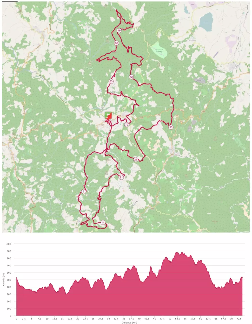 Chianti Ultra Trail mierzy 73 km i ma 2500 m przewyższenia. Trasa rozpoczyna się w Radda i tam też kończy. Jest w jednej pętli. Po drodze zawodników czekają trzy punkty kontrolne z limitami czasu oraz pięć stacji odżywczych, które oferują, poza wodą, także piwo, wino a nawet grappę. Trasa wiedzie przez historyczne winnice regionu oraz gaje oliwne. Najwyższym punktem na trasie jest góra San Michele, która ma… 900 metrów. Limit czasu na pokonanie tego dystansu to 14 godzin. Bieg jest na liście kwalifikujących do UTMB, przyznano mu 3 pkt. ITRA.
