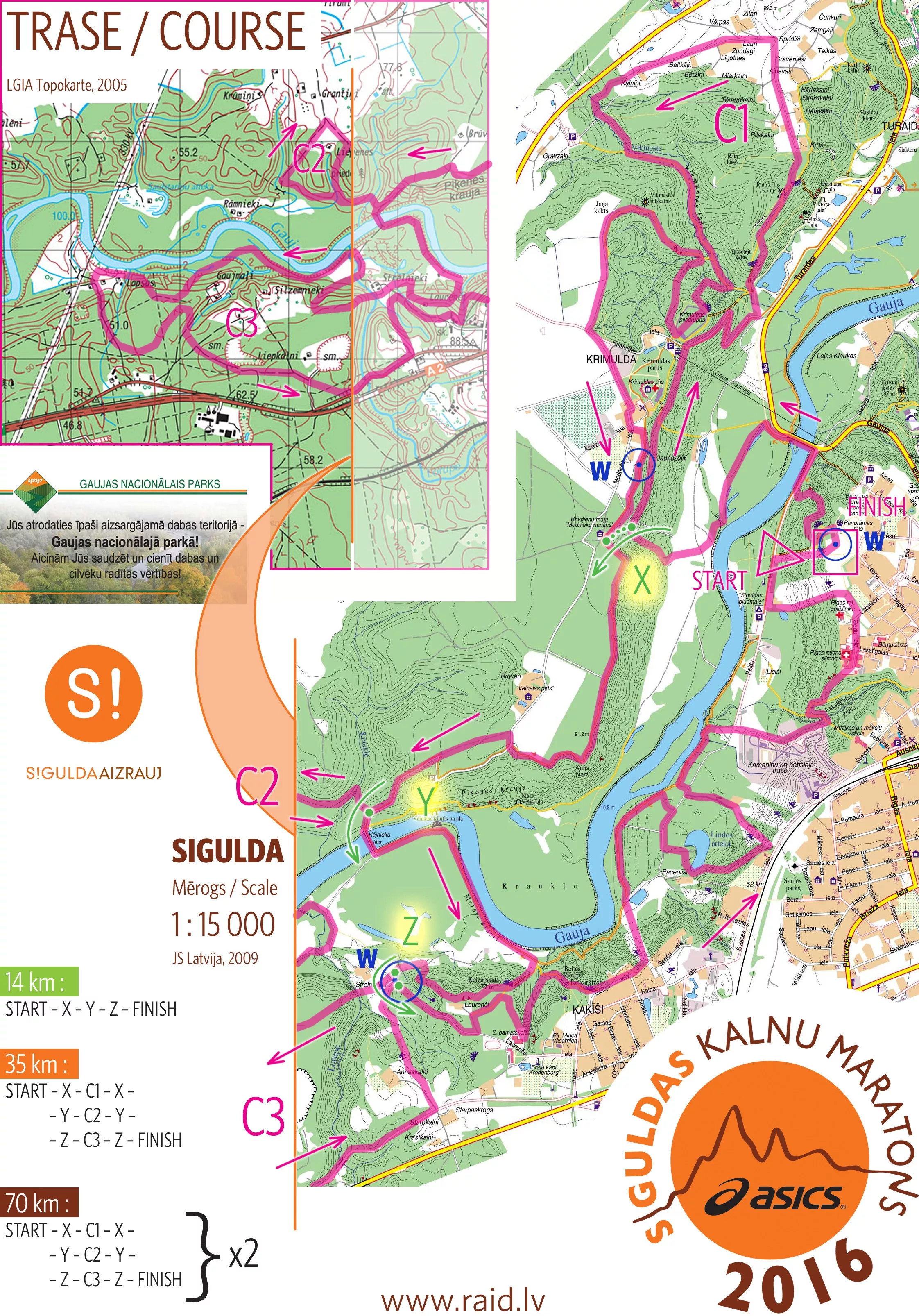 Trasa nie została jeszcze ujawniona, pewne jest to, że rozpocznie się i zakończy w Siguldzie, będzie miała długość 70-74 km i przewyższenie nie większe niż 3000 metrów. Nawierzchnia w większości naturalna – leśne i polne drogi, wąwozy, ścieżki i sporo terenowych przeszkód, jak zapowiadają organizatorzy.