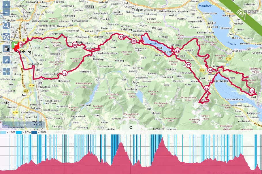 Bieg startuje i kończy się w Salzburgu. Pętla prowadzi przez Fuchl am See, nad jeziorem Wolfgangsee, Schafberg, Zwölferhorn, Nockstein i Kapuzinerberg.