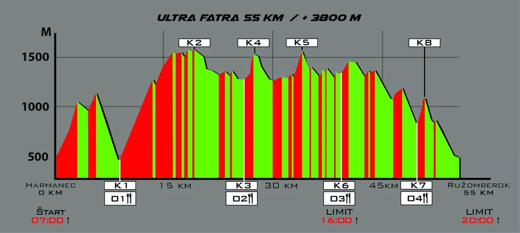 Na trasie znajduje się siedem punktów kontrolnych i cztery punkty odżywcze. Jest jeden limit pośredni, w punkcie przy hotelu Granit Smrekovica, na 38 km trasy. Należy tam dotrzeć przed 16:00, czyli przed upływem dziewięciu godzin. Limit czasu na pokonanie całej trasy to 13 godzin.