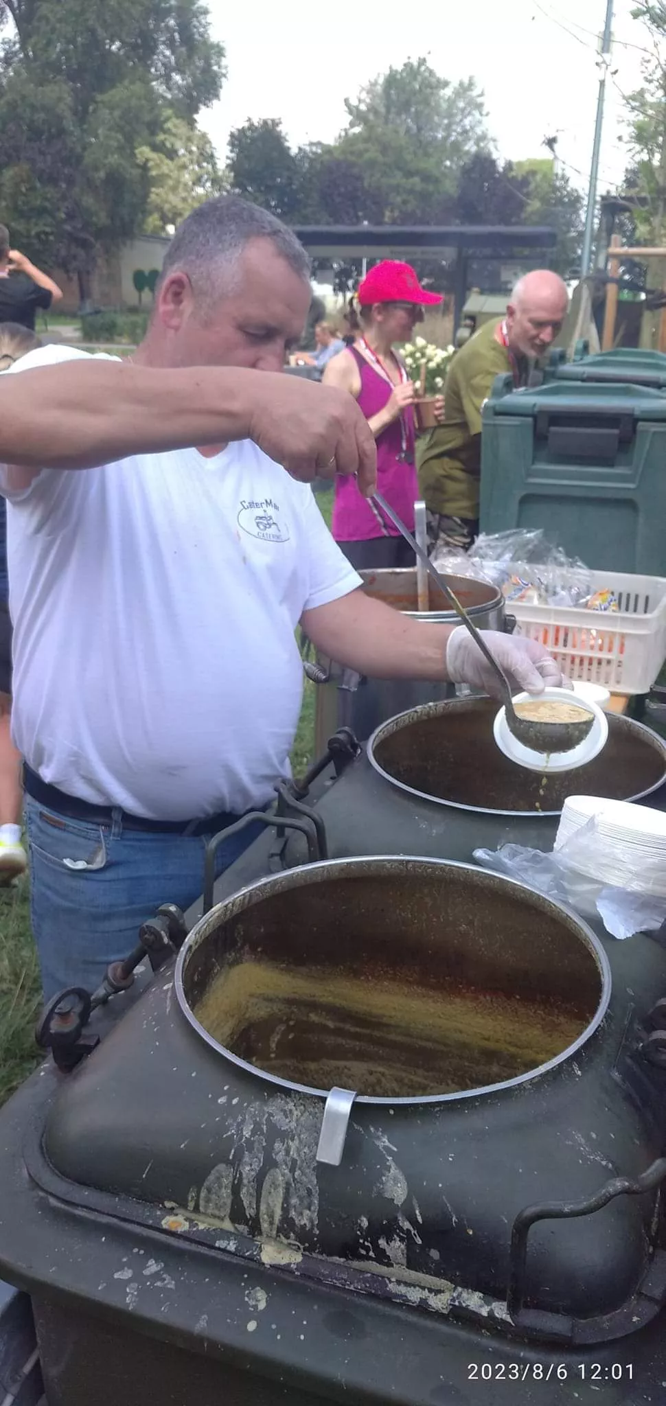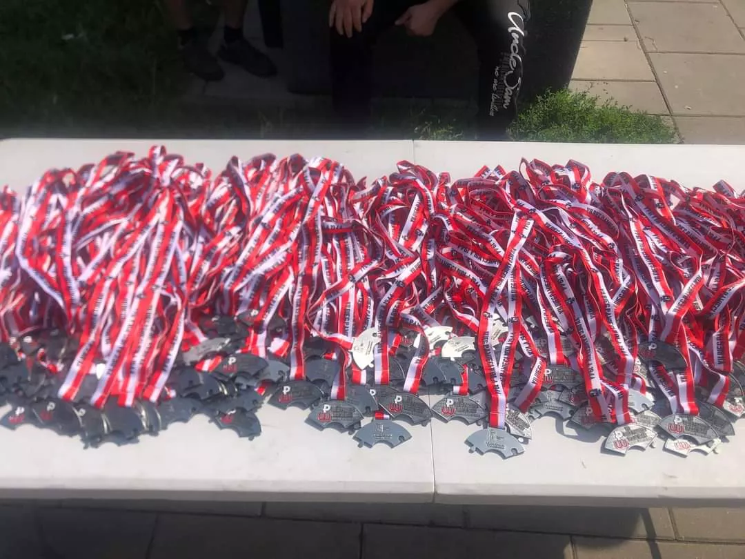 Nagradzani też byli biegacze w kategoriach wiekowych i dzieci, które biegali krótsze trasy. Pogoda była trudna do biegania: duchota i wilgoć utrudniały komfort biegu. A po biegu niezmiennie zupka od Pana Marka. Do zobaczenia za rok. (Irina Hulanicka – ambasador Festiwalu Biegowego).