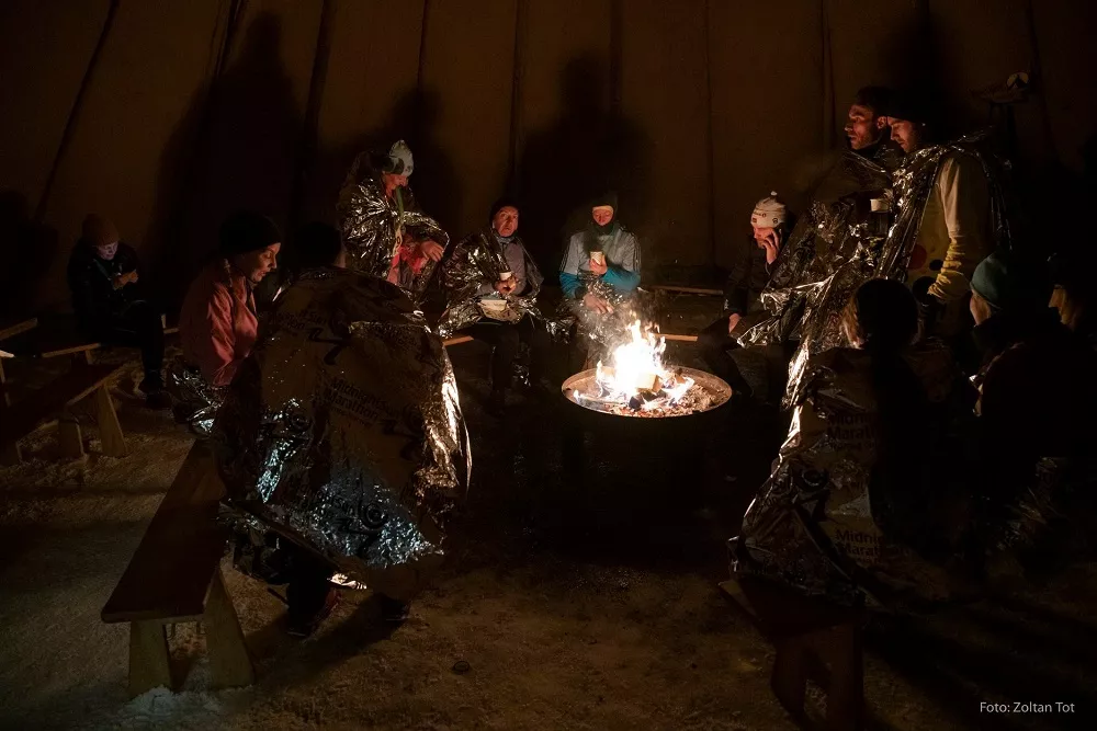– Kilometry na trasie są oznaczane odwrotnie niż w Polsce, a więc malejąco, odliczając dystans nie przebiegnięty, a pozostały do mety. Na 18. kilometrze stała zatem tabliczka 3 KM i było to nawet miłe, bo trasy ubywało, choć pokonanych kilometrów przybywało. Trasa oznaczona fantastycznie, co 25 metrów stały płonące lampiony, co łagodziło nieco siarczysty mróz i przypominało o tym, że już (!) za 2 tygodnie nawet tu wróci słońce.