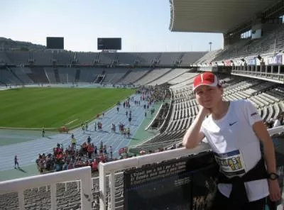 Jeszcze przed rozpoczęciem zawodów, bieg maratoński emanował fantastyczną atmosferą. Tuż przed startem, z głośników popłynęła muzyka i słowa Freddiego Mercury’ego „BARCELONA” co tylko podgrzało atmosferę. Do linii startu szłam trzy i pół minuty z racji tego, że postanowiłam pozwiedzać to niezwykłe miasto również w biegu. Nie śpieszyłam się więc, ale chciałam utrzymać prędkość w granicach pięciu minut na kilometr. Kilkunastotysięczna grupa ludzi sprawiła, że od startu do mety cały czas biegnie się w tłumie ludzi. Moje najpiękniejsze momenty to stadion CAMP NOU, SAGRADA FAMILIA, pod którą dopadło mnie wzruszenie, a także budynek PEDRERA w stylu Gaudiego, Łuk Tryumfalny „ARC DE TRIOMF”, POMNIK z Kolumną KOLUMBA i ostatnia dwu kilometrowa prosta do mety, na której wyprzedziłam sporo osób, ponieważ zostawiłam trochę sił na koniec biegu. Moją trasę maratońską pokonałam w czasie 3:28:30. Wynik tutaj jednak, był sprawą drugorzędną. Udział i przeżycia związane z biegiem - niezapomniane. W maratonie wzięło udział 156 Polaków, a mnie udało się zająć trzecie miejsce wśród Polek na 31 startujących.