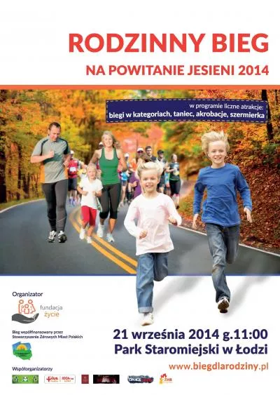 W niedzielę 21 września o godz. 11.00 Fundacja Życie zaprasza do Parku Staromiejskiego na Rodzinny Bieg na Powitanie Jesieni. W programie cztery biegi na dystansach od 100 do 2000m, w zależności od kategorii wiekowej uczestników, a także zajęcia taneczno-ruchowe, pokaz tańca, ćwiczenia i zabawy gimnastyczno-akrobatyczne, pokaz akrobatyczny oraz pokaz szermierki szablą.