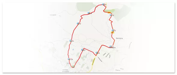 Jest to moja ulubiona trasa jesienna ze względu na przepiękne jesienne kolory wzdłuż całego biegu. Start z Krosna przy parku linowym przy ul. Okrzei w kierunku Korczyny. Biegniemy zielonym szlakiem a w Korczynie skręcamy w lewo w kierunku Czarnorzeki. Na ok 8 kilometrze znajduje się rezerwat skalny Prządki ? jest to pierwsza atrakcja na trasie. Następnie przy szkole skręcamy w lewo i biegniemy w kierunku zamku. Po drodze mijamy zamkową winnicę i zbliżamy się do największej atrakcji na trasie - ruin zamku Kamieniec. Dalej zbiegamy z górki w kierunku Spornego i przez Białobrzegi dobiegamy do parku linowego, który był początkiem trasy . Trasa asfaltowa 17 km po górkach. Czas mojego biegu to ok 1,45min.