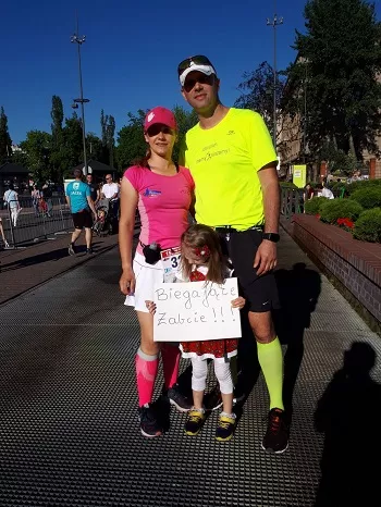 – Czas biegu nie ma dla nas znaczenia, bo nie biegamy dla wyników – deklaruje Marzena. – Nie trenujemy pod zawody. Po prostu stajemy na starcie, a potem pojawiamy się na mecie z uśmiechem na twarzy i trudem trasy w nogach. Choć szybsze pojawienie się na mecie, owszem, cieszy. Wynik, który pamiętamy, to Półmaraton Warszawski, na którym Łukasz kilkoma sekundami złamał 2 godziny a ja wpadłam na metę zaraz za nim i miałam na zegarku równiutko 2:00:00, gdzie rok wcześniej zajęło mi to ponad 2,5 godziny!