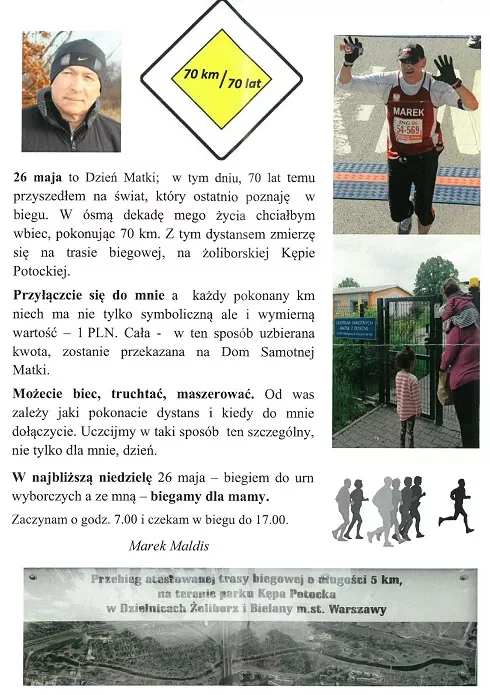 Warszawa: 70 km na 70 lat - pobiegnie w Dzień Matki