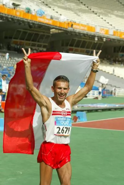 Robert Korzeniowski to postać nieprzypadkowa w całym przedsięwzięciu. Nasz znakomity chodziarz w 1989 r. zdobył swój pierwszy medal Mistrzostw Polski. Karierę sportową zakończył zdobywając złoty medal IO w Atenach w 2014 r., już po wstąpieniu Polski do Unii Europejskiej.