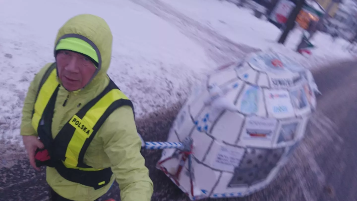 Wyprawa, która ma się zgodnie z planem zakończyć w lutym, od początku toczy się w problemami. Wszystko z powodu wózka. Pojazd ma służyć ultramaratończykowi za mini dom i spiżarnię. Swoją konstrukcją przypomina igloo na kołach. Wprawdzie to tymczasowe schronienie jest styropianowe, a więc stosunkowo lekkie, ale za to jego wyposażenie waży ok. 170 kg.