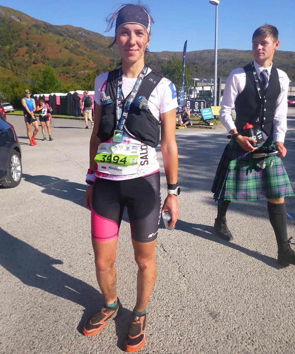 Zaliczyłam standardową „glebę” na takich zawodach, do tego w łatwym miejscu – mówiła „Miśka” pokazując zakrwawione kolano. – Biegło mi się dosyć ciężko, trochę miałam problemy na podbiegach i podejściach, ale uratowały mnie zbiegi. Były wymagające technicznie, takie jak lubię. Słońce mocno przygrzewało, ale w Szkocji trzeba się z tego cieszyć. Wiatr zawiewał tak mocno, że na pierwszej grani trochę traciłam równowagę, na szczęście niegroźnie. Jestem zadowolona z zajętego miejsca, ale nie z wyniku. Zdaję sobie sprawę, że to nie jest szczyt mojej formy. Najważniejsze, że dobiegłam do mety w jednym kawałku i przeżyłam piękną przygodę, bo to był jeden z najciekawszych biegów, w jakich brałam udział. Na pewno będę chciała tutaj wrócić.