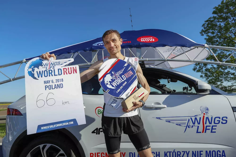 - W ubiegłym roku debiutowałem w WflWR. Chciałem zobaczyć jak to wygląda, pobiegłem z fantazją. W tym roku planowałem ten start. Niestety było dużo cieplej. Rok temu było chyba z 8 stopni, bo zmarzłem… To był dopiero mój drugi bieg ultramaratoński. Biegam maratony, hobbystycznie po godzinach... - opowiadał dziennikarzom specjalista IT Dariusz Nożyński. Dodał, że jest szansa, że i w przyszłym roku zobaczymy go na trasach Wings for Life World Run.