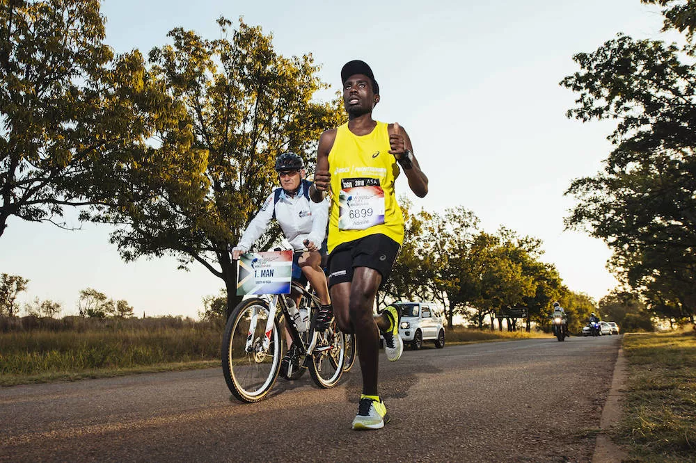 Po 4,5 godz. na trasie zostało już tylko czterech zawodników (Admire Muzopambwa pożegnał się z biegiem po pokonaniu nieco ponad 63,2 km, wygrywając w Pretorii). Po kolejnych 10 minutach stawka skurczyła się do 3 zawodników. Prowadził niezagrożony wózkarz Aron Anderson.