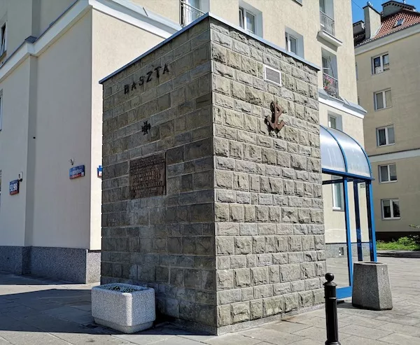 Wcześniej jeszcze na tym skrzyżowaniu są dwa miejsca do zobaczenia. Pierwsze koło boiska Orlik, upamiętniające miejsce nocnego starcia Pułku AK "Baszta" z SS i poległych tu żołnierzy.