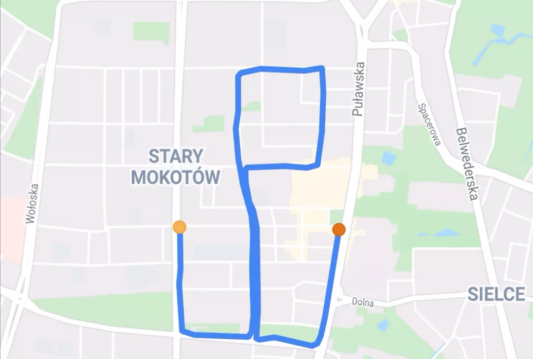 Dobiegając do ul. Puławskiej czas skręcić w lewo i podążać aż do ul. Dąbrowskiego.