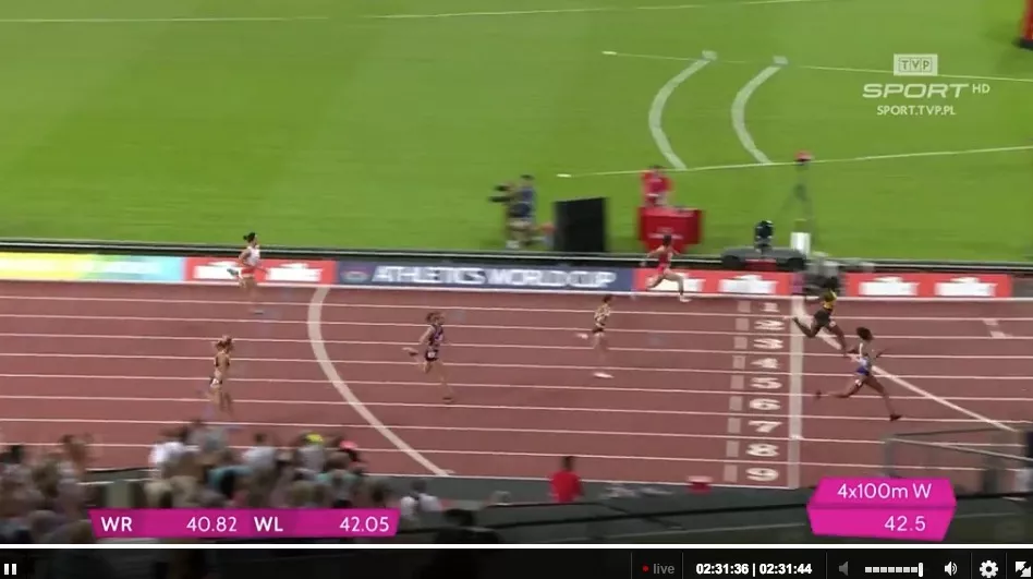 - 4 x 100 m kobiet: 7. miejsce Polska (43.82)