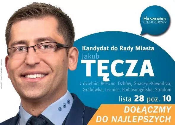 W Częstochowie kandyduje Jakub Tęcza - Ambasador Festiwalu Biegów, a przy tym również pomysłodawca i dyrektor Przełaj Bałtyk czyli Częstochowskiego Marszu Nordic Walking, Wiceprezes stowarzyszenia Klub Ludzi Aktywnych Zabiegani Częstochowa.