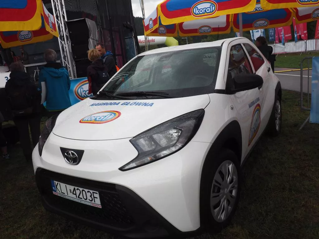 Kamil pojedzie nowym autem do Kobiernic w województwie śląskim. Nagrodą główną jest nowiutki, pięciodrzwiowy SUV (rocznik 2022) Toyota Aygo X. Auto ma wyposażenie, jakiego pozazdrości każdy kierowca. Jest po prostu nie do zdarcia - jak biegacze Koral Maratonu i Iron Run, do tego bezpieczne i oszczędne.