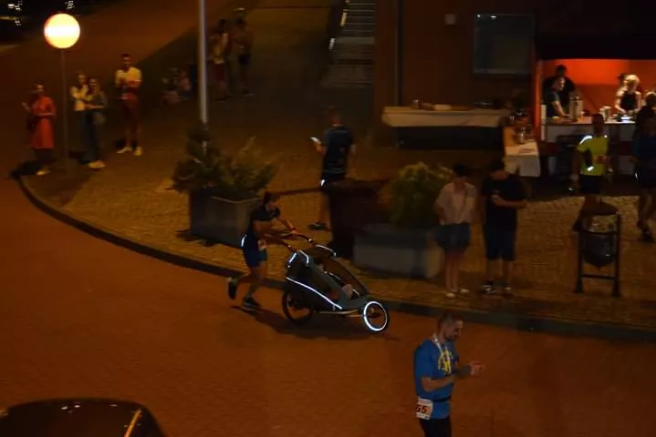 Zapisałam się na 10 km. Od początku planowałam biec z wózkiem a na tym dystansie były większe szanse że zaśnie. Punktualnie o 21:00 na trasę ruszyli wszyscy biegacze. Ustawiłam się z przodu bo później ciężko się przebić z wózkiem między biegaczami.
