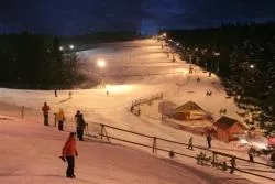 Czekają na Państwa codziennie przygotowane, naśnieżone i oświetlone trasy narciarskie oraz smaczne jedzenie i cieplutkie spanie w "Chacie na stoku" tuż przy dolnej stacji kolejki krzesełkowej.