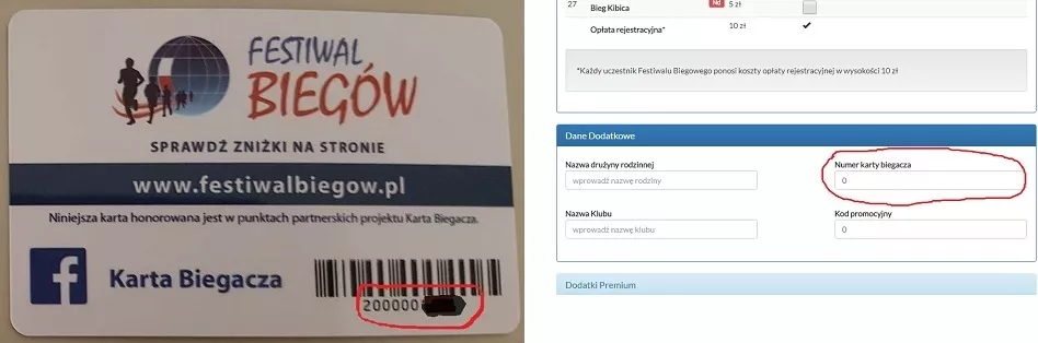 Aby skorzystać z rabatu w opłacie wpisowego – wpisz numer karty (umieszczony na odwrocie pod kodem kreskowym) w stosowne miejsce formularza rejestracyjnego, a system sam naliczy zniżkę.