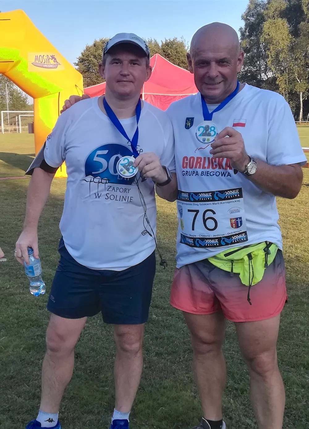 - Planowałem w poprzednich latach wystartować w tym biegu, ale albo zabrakło czasu, albo już lista startowa była zapełniona. W tym roku się udało. Na starcie pojawiło się niewielu biegaczu, co i tak w tych trudnych czasach jest dużym sukcesem - relacjonuje Marek Podraza, Ambasador Festiwalu Biegowego i uczestnik biegu (na zdjęciu po prawej - red.).