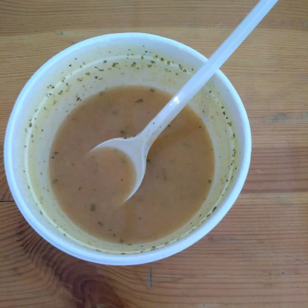 Na mecie, oprócz medalu, mamy pakiet regeneracyjny: woda, izotonik, herbatniki, banan, mandarynki – wszystko ładnie spakowane w worek na sznurek. Dalej za depozytami - każdy miał swoje miejsce na metalowym wieszaku! - ciepła zupa.