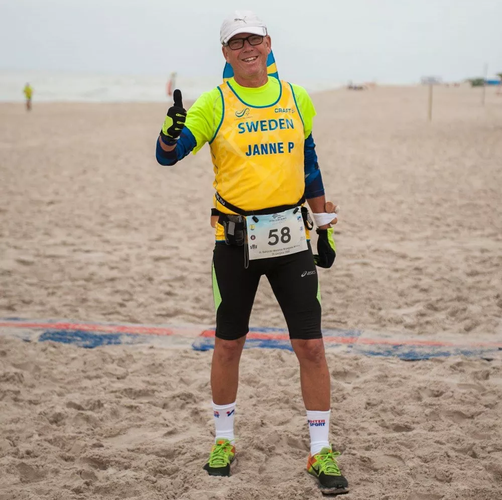 Jan ma 68 lat, biega maratony od roku 1982. Podróżując kiedyś a maraton w Sydney poznał Barbro, z którą rok później ( w 1998 r.) się ożenił i odtąd wspólnie dzielą biegową pasję. A pobrali się… na Stadionie Olimpijskim w Sztokholmie, gdzie finiszował maraton w stolicy Szwecji, oczywiście zaraz po jego ukończeniu.