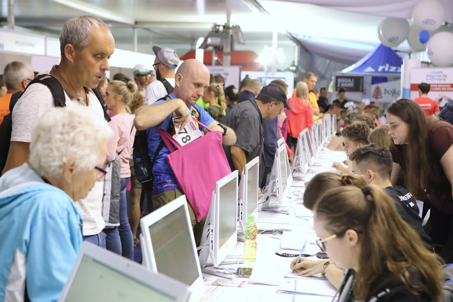 Wojciech Marcinek startuje na tym samym dystansie. – To moje pierwsze 64 km nie tylko w Krynicy, ale w ogóle. Jestem pozytywnie nastawiony, mam nadzieję, że dobiegnę do mety. Właśnie odebrałem pakiet. Bardzo sprawnie, bez kolejek. Teraz idziemy do pakietów premium, żeby odebrać koszulki, ręczniczki…