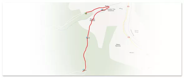 Trasa rozpoczyna sie obok hotelu Perła Południa, skręca przed Szkoła Podstawowa im. Stefana Pawlika w prawo w kierunku Roztoki Małej. Następnie wiedzie 3,5km do wysokości strumienia o nazwie Żabieniec. Trasa wraca tym samym przebiegiem do hotelu Perła Południa.