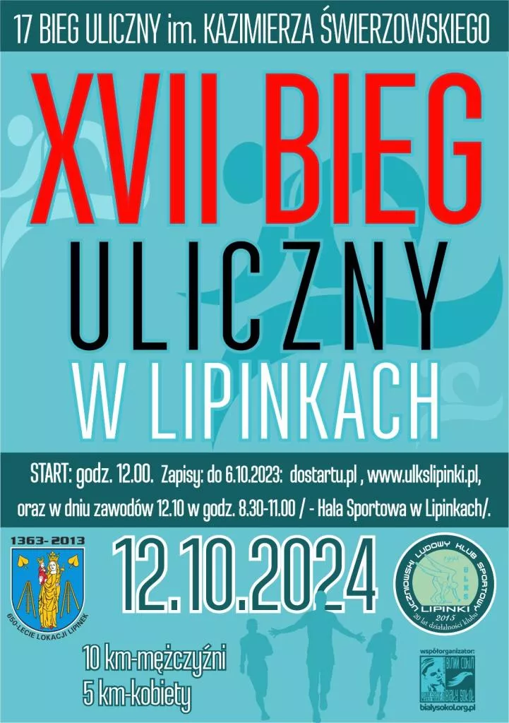 Tegoroczny XVII Bieg Uliczny im. Kazimierza Świerzowskiego w Lipinkach odbędzie się w sobotę 12 października. Kolejny już raz na trasę wybiegną sportowcy, aby uczcić pamięć po zmarłym w 2004 roku Kazimierzu Świerzowskim – nauczycielu, trenerze i wychowawcy młodzieży, który zapoczątkował lekkoatletykę w Lipinkach. To jedna z najciekawszych cyklicznych imprez biegowych w naszym rejonie, w której startują utalentowani biegacze z całej Polski. Celem imprezy jest uczczenie pamięci trenera Kazimierza Świerzowskiego , promocja biegania jako najprostszej formy ruchu oraz promocja Gminy Lipinki. Bieg organizuje ULKS Lipinki przy współudziale: UG Lipinki, Starostwa Powiatowego w Gorlicach, Gminnego Centrum Kultury w Lipinkach, OSP w Gminie Lipinki oraz Lokalnej Fundacji Oświatowej w Lipinkach.